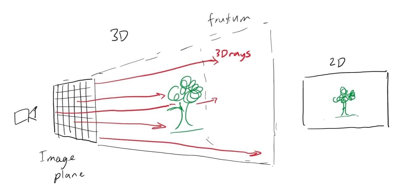 On a high level, NeRFs could be considered a volumetric representation of a pre-rendered scene. An important concept to know about is the image plane: