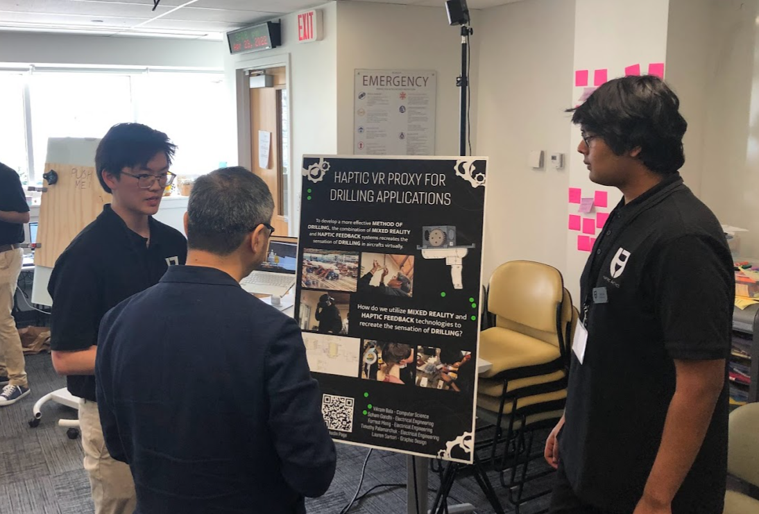 My team finished the project and presented it at the VT CHCI symposium, where we won second place while being the only underclassmen team. We also presented to the Chief Strategy Officer of Boeing (Mark Allen) and the Chief Technology Officer of CAT (Karl Weiss). With initial testing, we had an 80% success in drilling sensation satisfaction with haptic illusion.