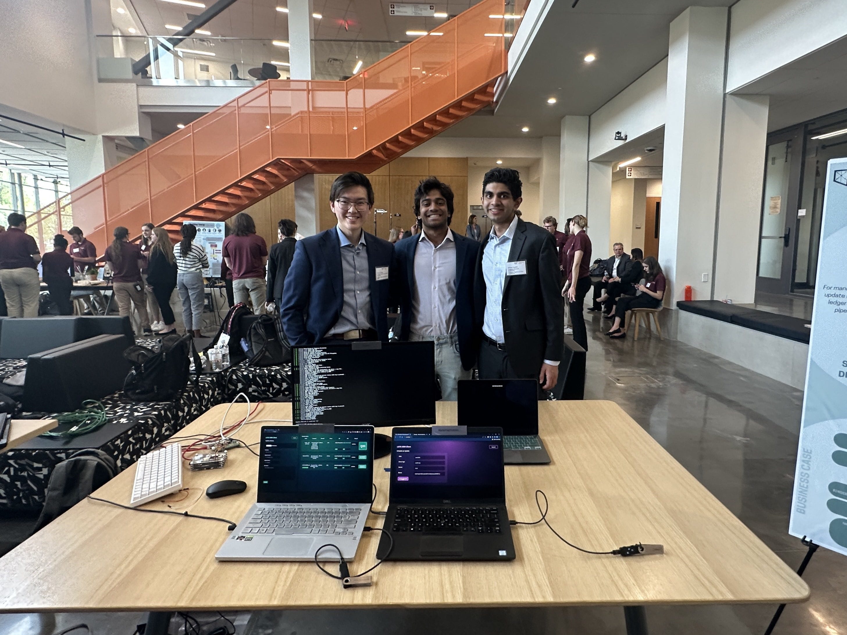 Using DLTs and a consensus-based approach, we built a proof of concept of an over the air secure firmware update system. We used Hedera’s hashgraph system for a low-cost method of ensuring that the integrity of the file sent from the OEM is upheld all the way to the machine itself, while still providing the manufacturer control over the process. No middleman is able to really interfere with the updating process. DLTs also are great for this purpose because of the many third-party actors a manufacturer has to interact with. We also used Estuary’s IPFS client for FileCoin to store the firmware files in a decentralized manner.