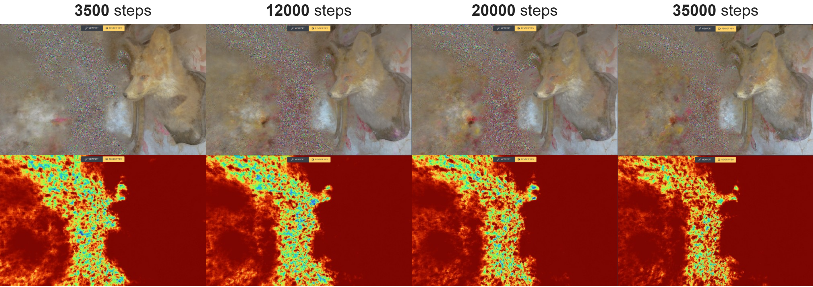 We then took the rendered image at each of the new view points, and used KMeans as well as the Laplacian Filter to create masks that held all areas with low resolution and low accumulation. These places would be then inpainted with a low prompt guidance diffusion model. We do this iteratively and while the NeRF is finetuning, so that we can gradually improve the NeRF’s accumulation and consensus while maintaining the NeRF’s original structure.